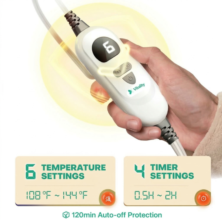 If you want to turn off the heat, just press and hold the plus (+) button until you hear the voice prompt say ‘Hot Compress Turned Off’. That confirms the heat therapy is off.