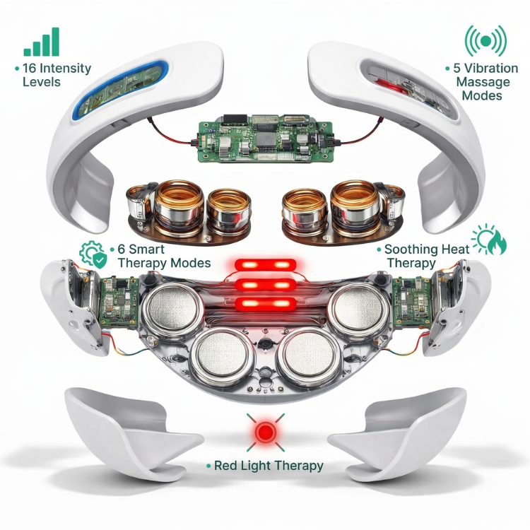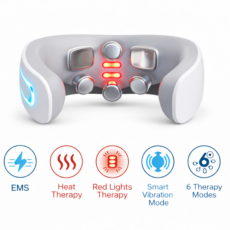 Inspired by advanced therapy systems costing $4,000+ in professional settings, MagicPro 3.0 combines EMS stimulation, soothing heat therapy, smart vibration massage, and red light therapy into one wireless device designed for everyday neck comfort — no appointments, no extra fees, just effective therapy whenever you need it.