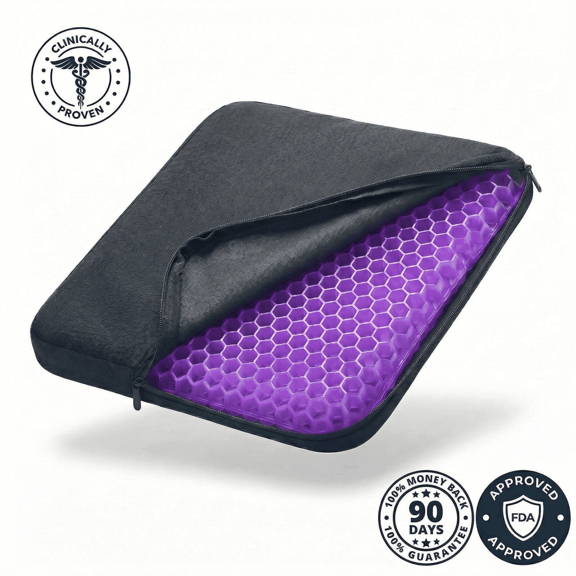 The Magic Comfort Cushion is a pressure-relief seat cushion designed to redistribute weight, improve airflow, and provide long-lasting support for people who sit for extended periods. Its honeycomb gel structure helps reduce pressure buildup, promote airflow, and keep you comfortable whether you're sitting at home, in a wheelchair, at work, or in the car.